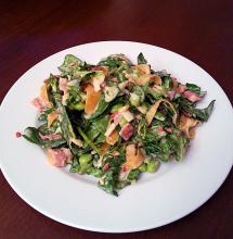 Wrijf zachtjes met je vingers over de bonen om eventuele stof te verwijderen. Voeg de sojasaus en de dubbelgedopte sojaboontjes toe en laat zachtjes een minuut of. Verdeel de salade over de borden en leg hier en daar wat stukjes vis op.